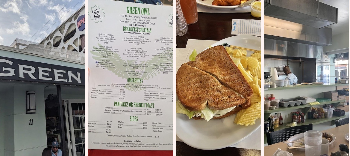 The menu at Green Owl Restaurant showcases a mix of classic American breakfast dishes and comforting favorites. Breakfast specials like the One Egg Special and Dave's Deluxe deliver delicious value, while omelettes range from plain to stuffed with spinach, tomato, and cheese. Pancakes and French toast offer a sweet start to the day, with options like blueberry and chocolate chip delighting diners.